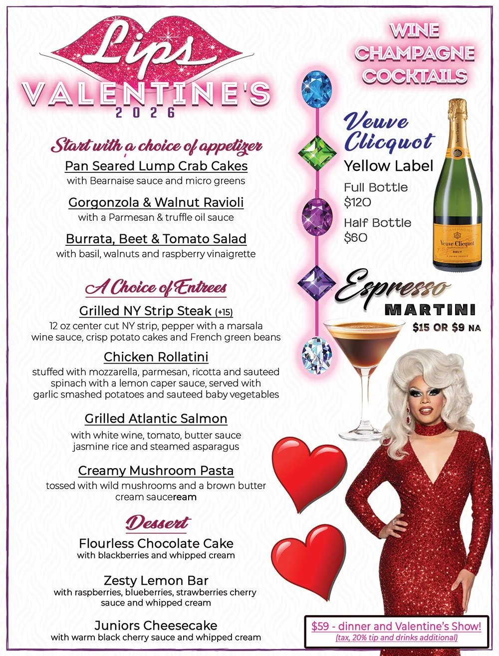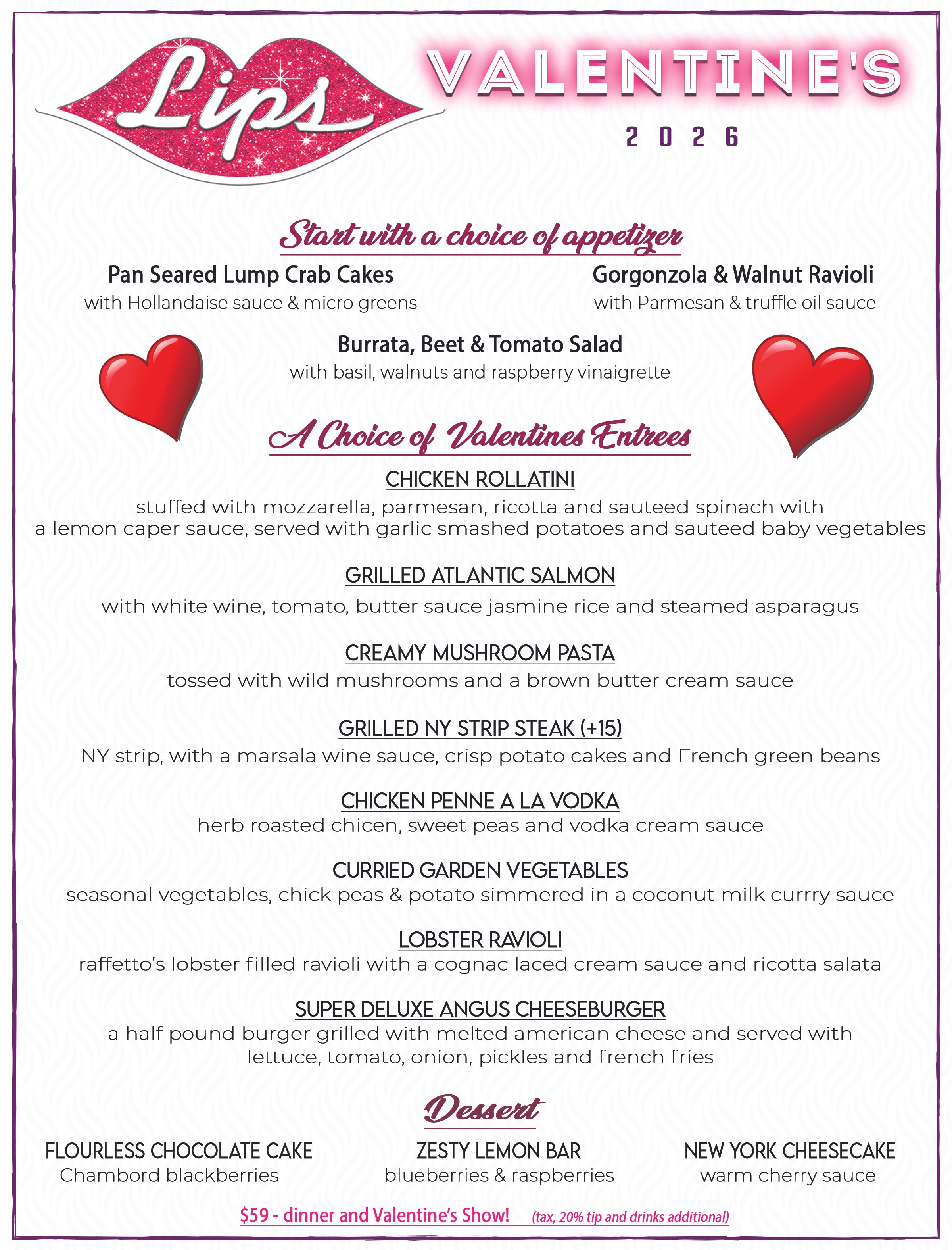 DINNER, DRINKS & FABULOUS VALENTINES SHOW!